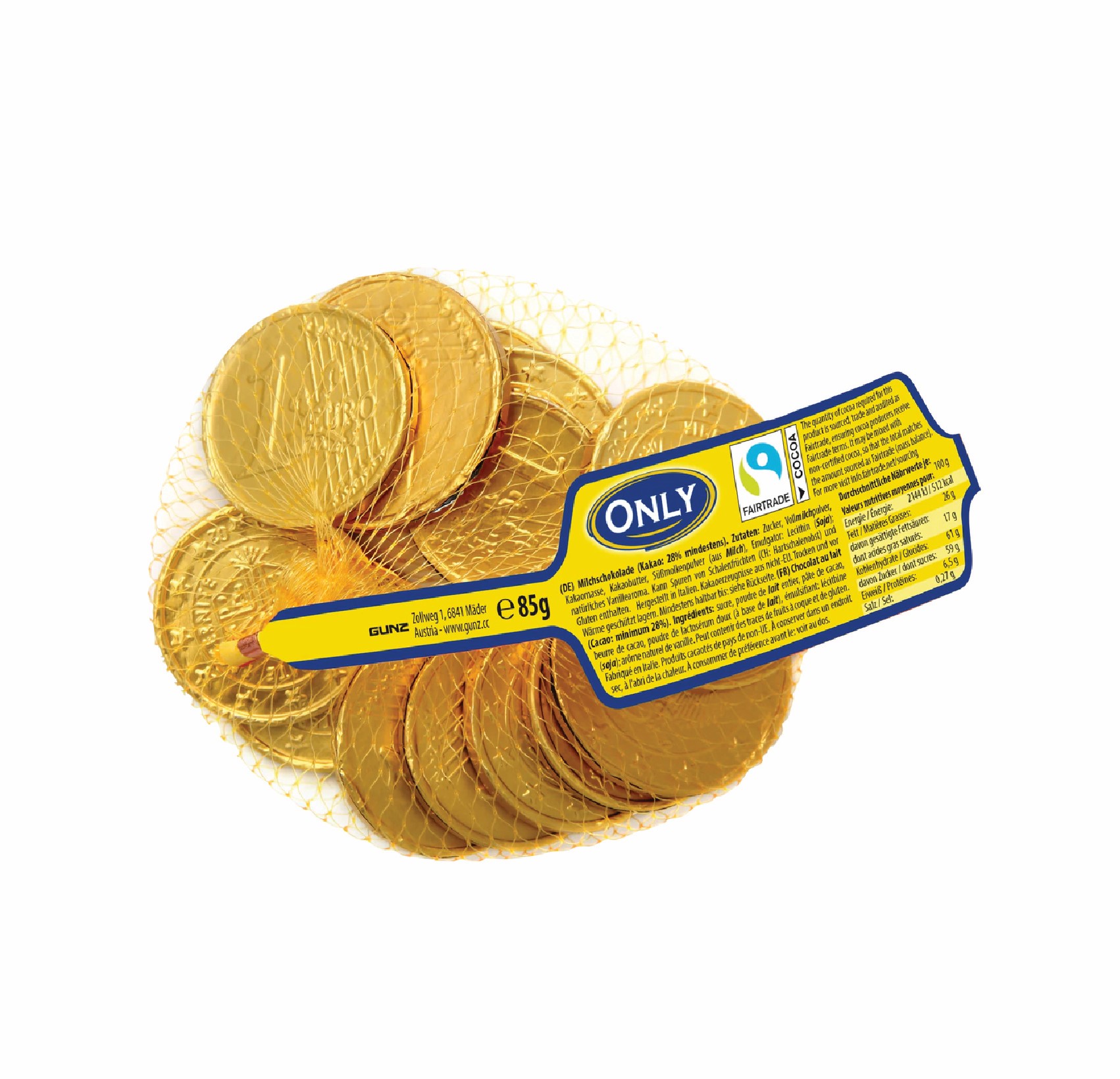 Մեծ ոսկե մետաղադրամներ կաթնային շոկոլադով